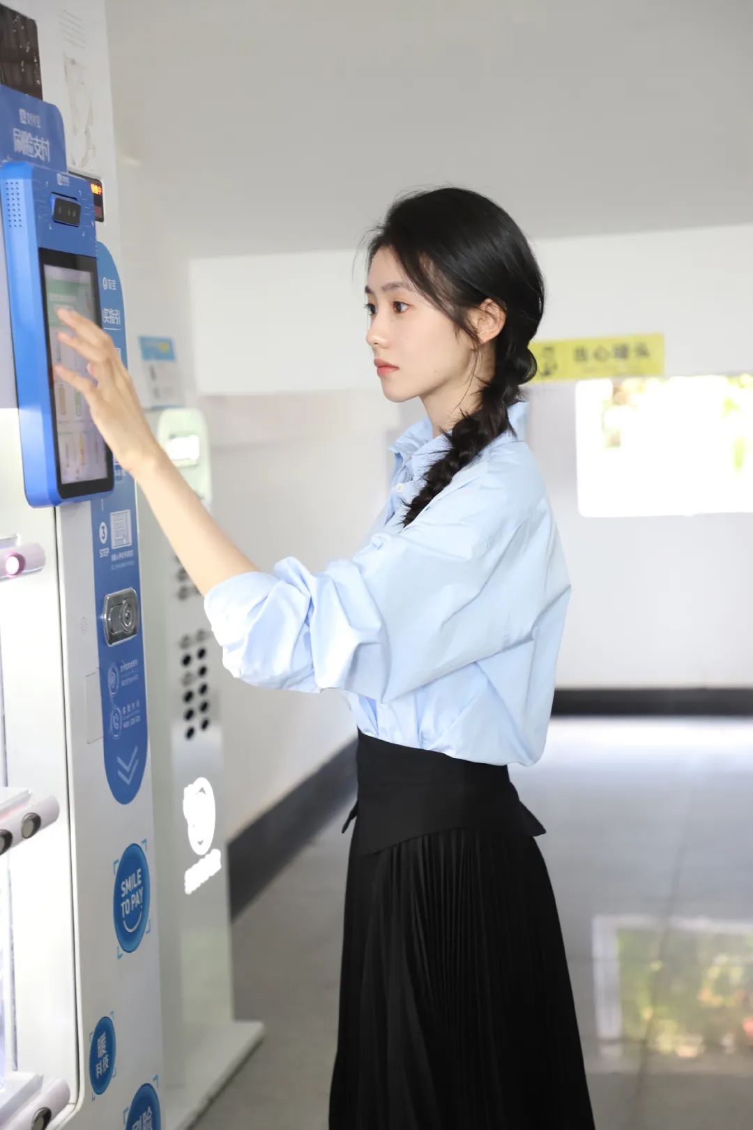 她的衣橱是“行走的冰柜调色盘”:纯白、冰蓝、灰粉、淡雾紫……所有自带冷雾滤镜的低饱和浅色,被她大面积铺满全身。