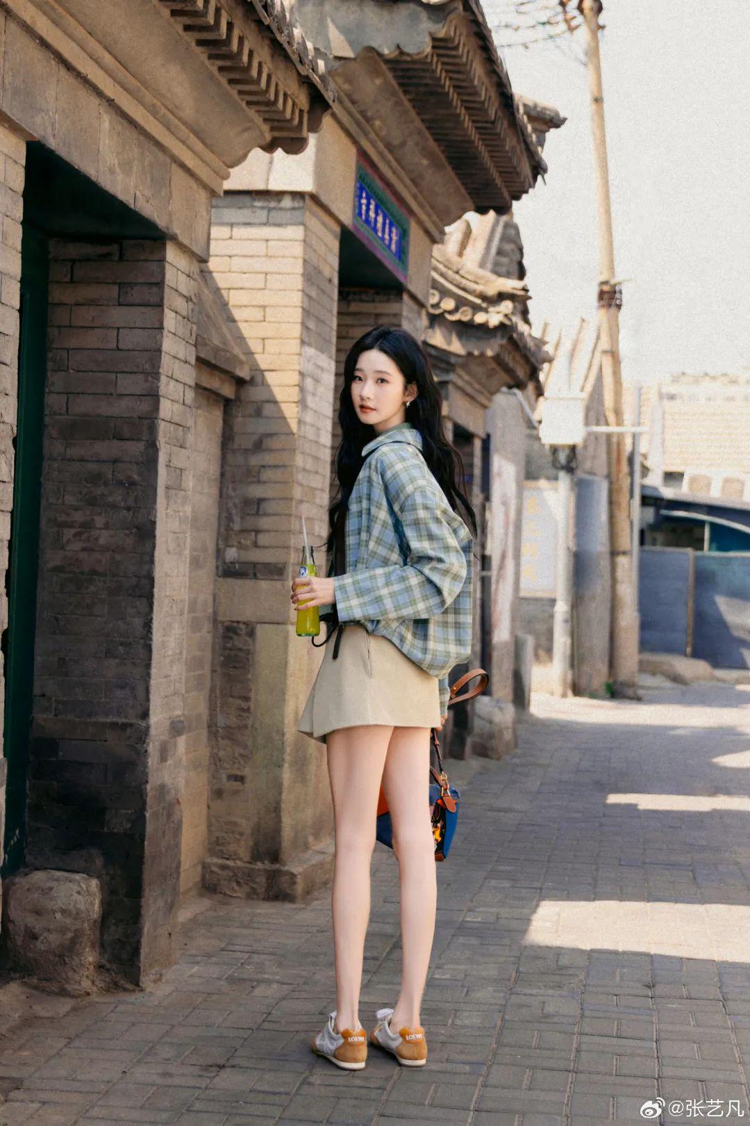 顶着老天赏饭的身材比例,张艺凡的私服堪称“长腿的100种展销方式”、“下装失踪”模板,Oversize男友衬衫、超大运动T恤下直接露逆天美腿。