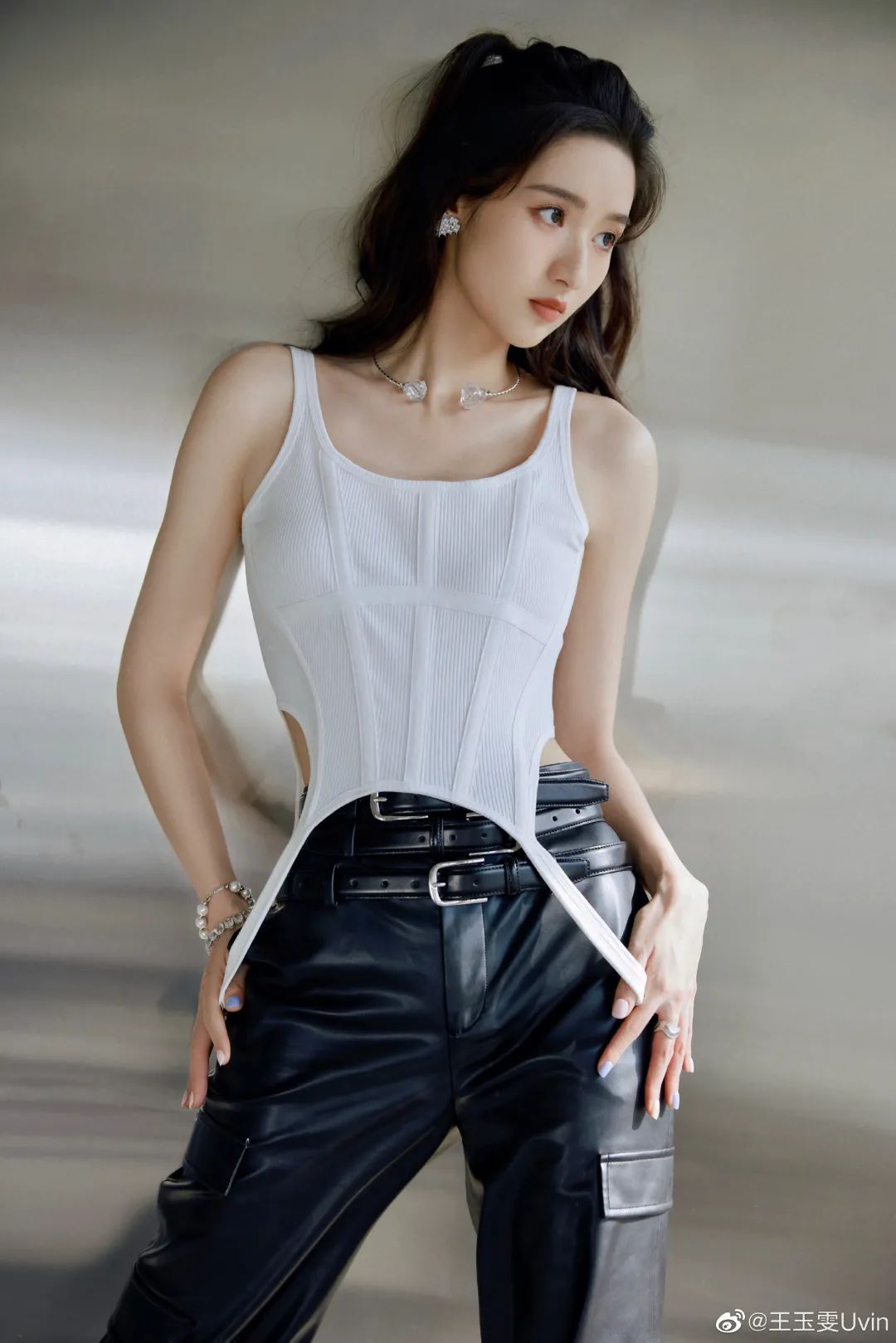 这些颜色和她的冷白皮、清冷表情叠加,瞬间制造“生人勿近结界”。哪怕穿短吊带裙,也像裹着一层凉气,盛夏看她的照片都觉得降温!