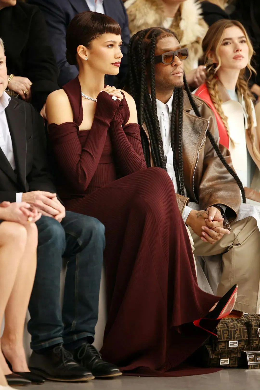 去看 Schiaparelli 2024 春夏高定大秀时 Zendaya 也选了一套很蛇蝎美人的造型。