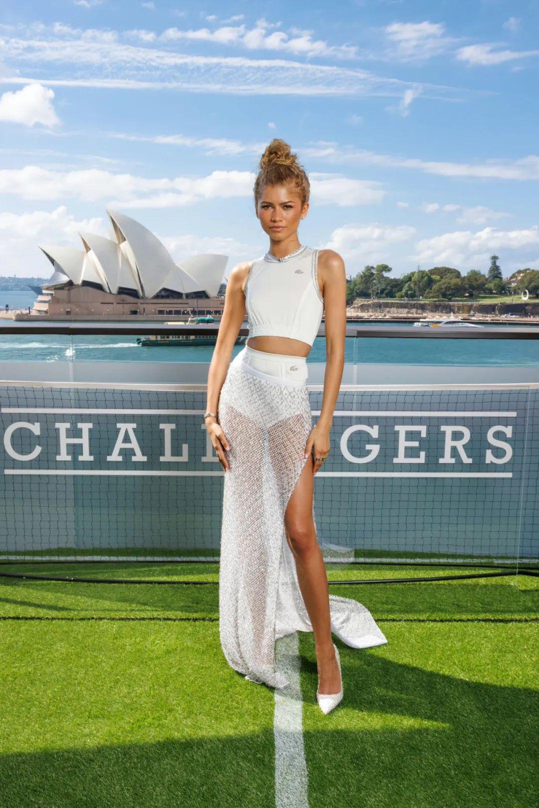 因为出演了网球题材的电影《挑战者》,“赞姐”在宣传期时有不少有趣的特别定制网球 Look。