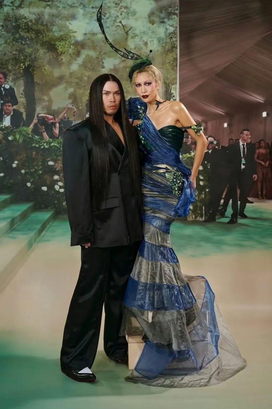 这套造型灵感来自“海盗爷”John Galliano 时期的 Christian Dior 1999 春夏高定系列,惊艳魅惑戏剧性十足,完美契合这届“The Garden of Time”的主题。
