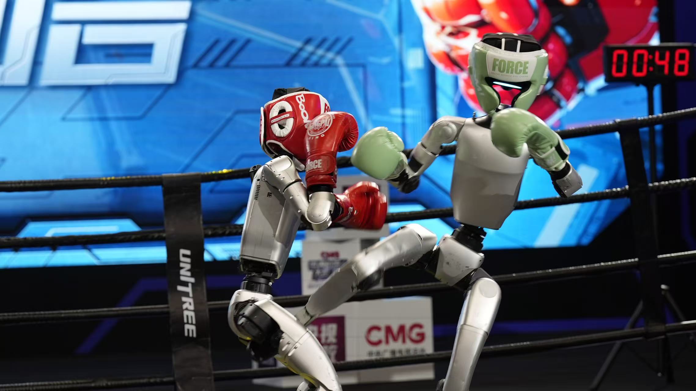 比赛中,G1连续施展勾拳、组合拳、侧踢、膝踢等技能,以及蓄力后向前撞的“终极大招”。在被击倒后,G1展现出较强的平衡性和敏捷性,多次在10秒内迅速爬起。